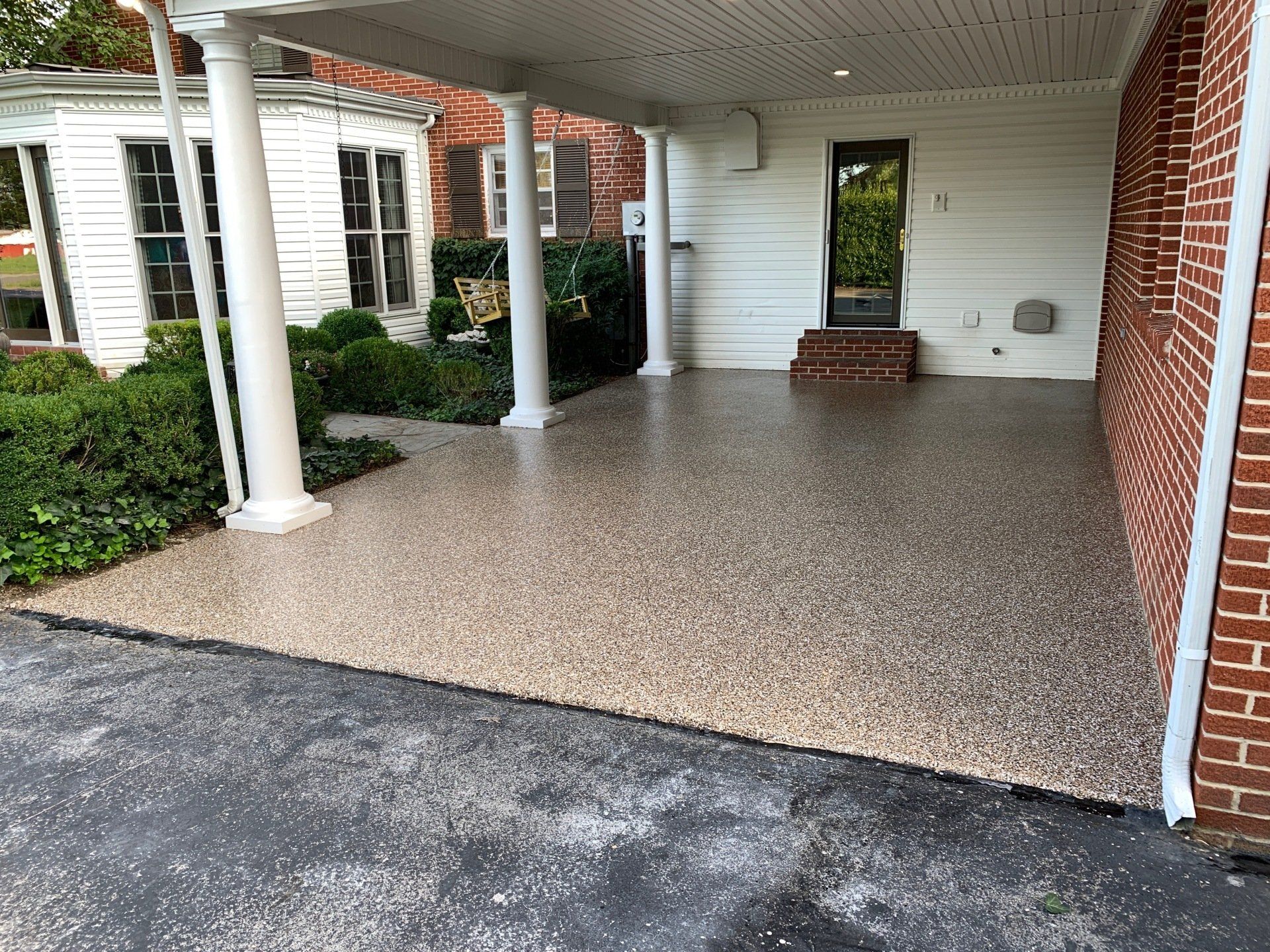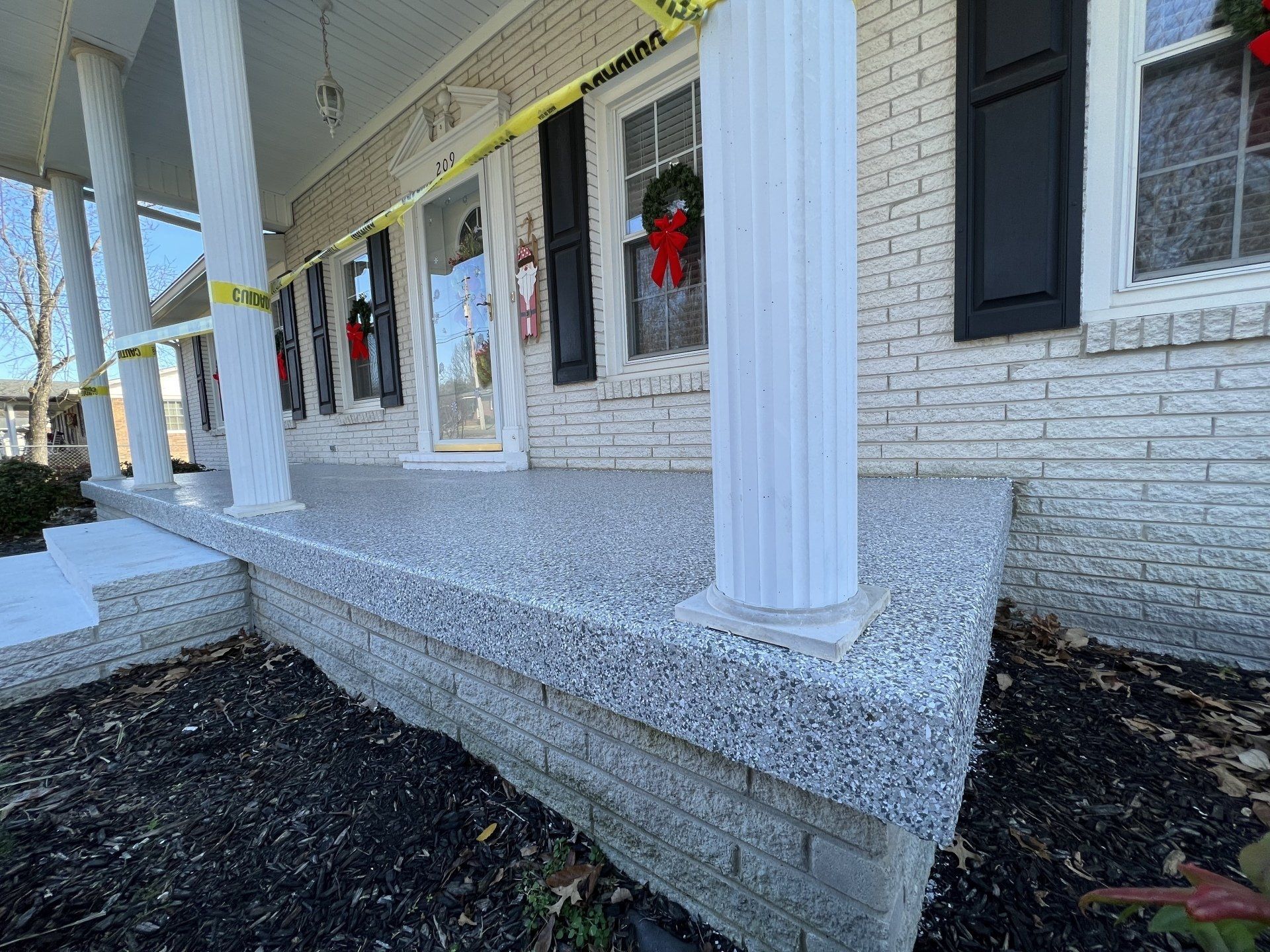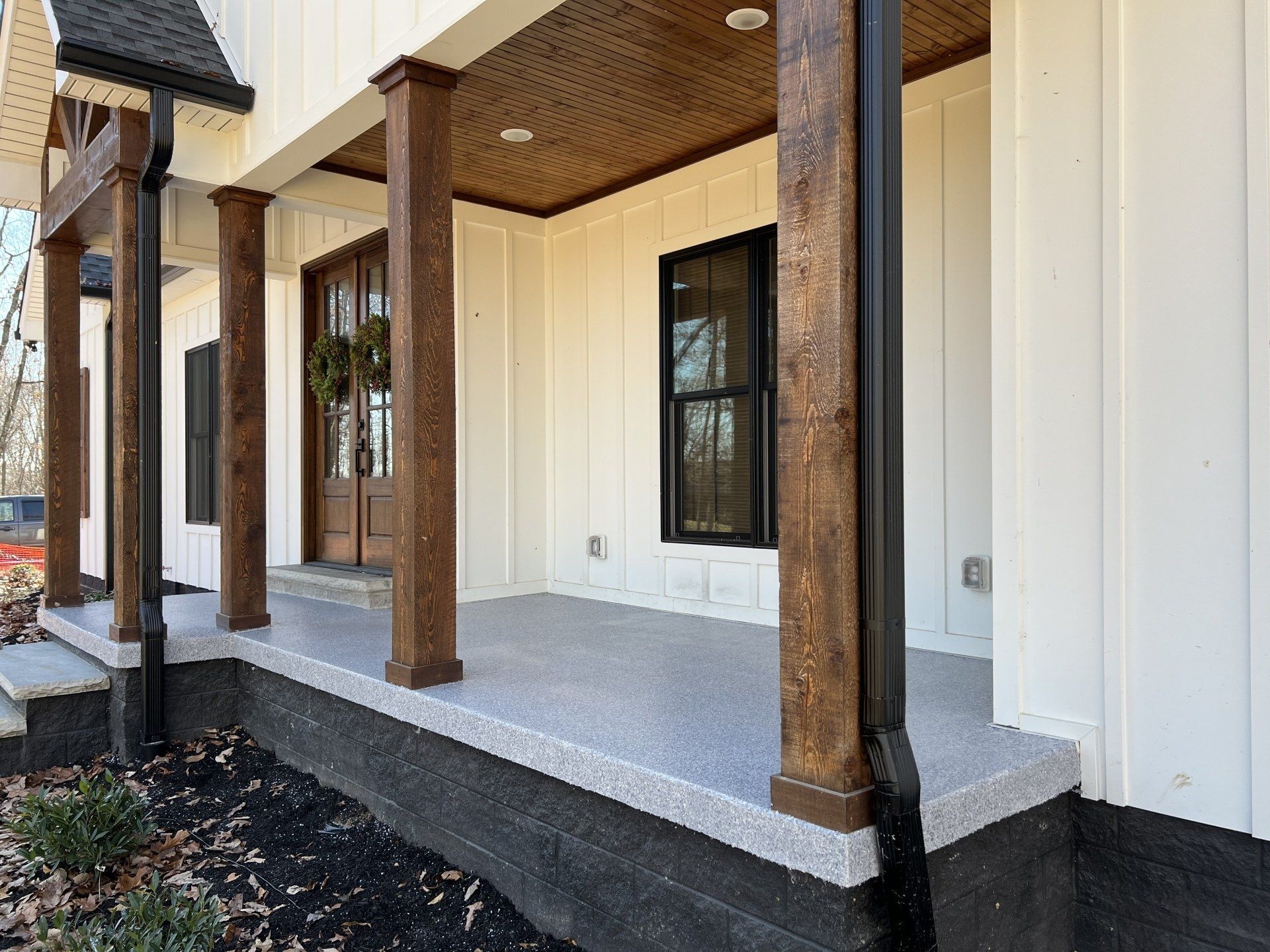 Our durable polyaspartic coatings for porches dry quickly, allowing customers to resume walking on these surfaces within a day of the application, depending on the project scope. With many colors and textures to choose from, customers can instantly update and modernize any porch or patio without the hefty expense and inconvenience of a complete tear-down and remodel.